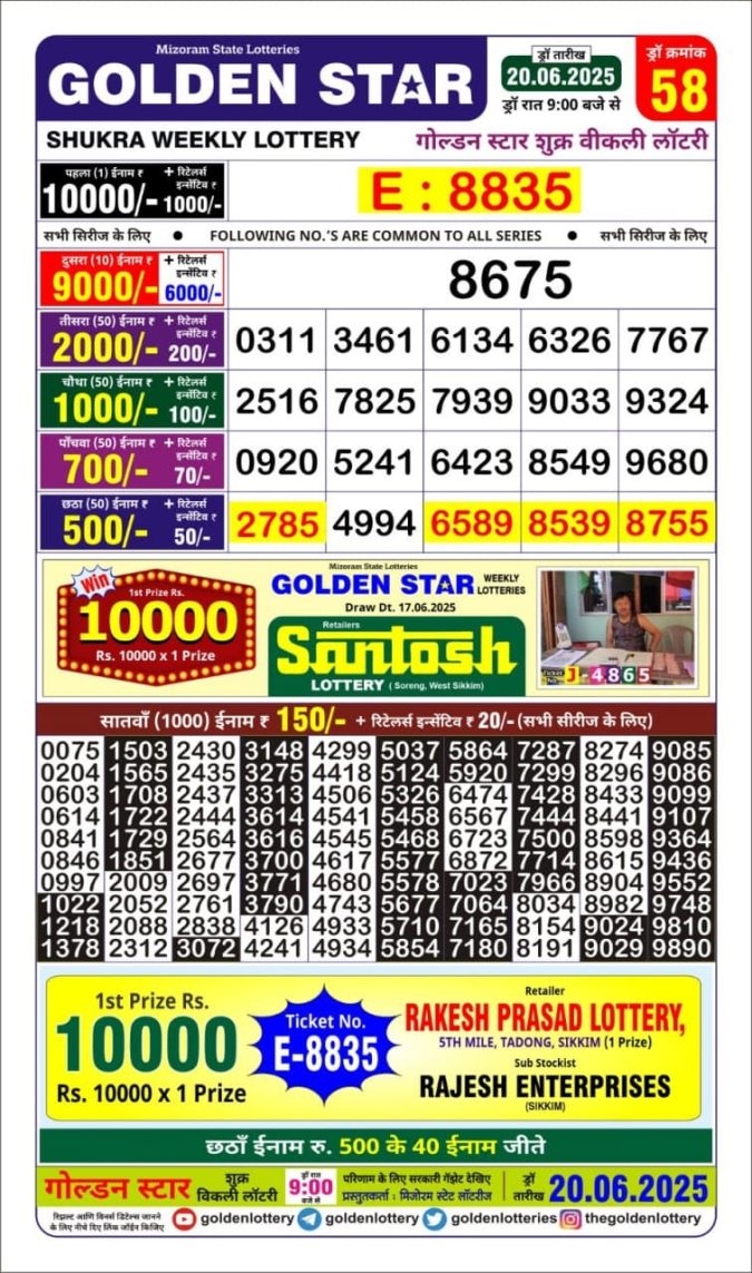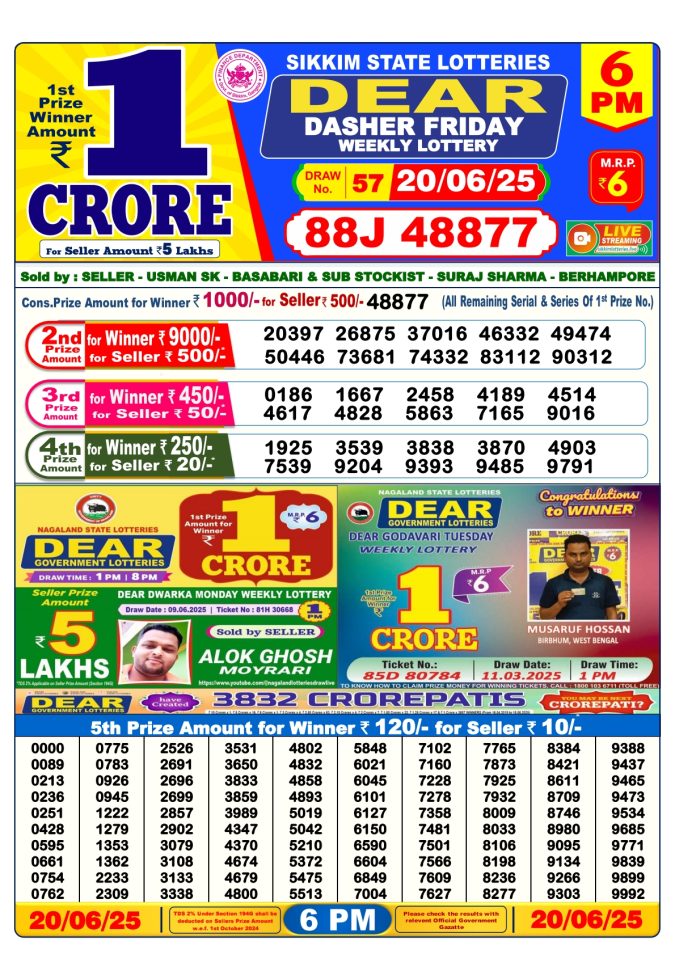 Lottery Ticket Results Today – Lottery Sambad Today – Dear Lottery Result Today