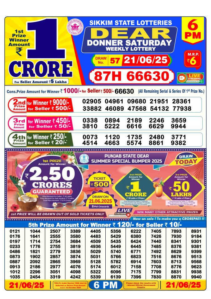 Punjab State Dear Summer Special Bumper Lottery Result 21/06/2025 – Check 2.5 Crore Winner Now! The Punjab…