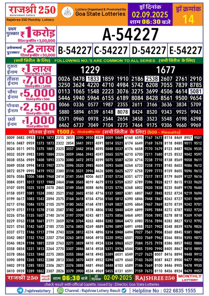 Rajshree 250 Monthly Lottery Result 02/09/2025