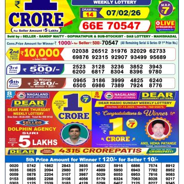 Rajshree Shani 2.25pm Weekly Lottery Result 07/02/2026 February 7, 2026 Leave a Comment on Rajshree Shani 2.25pm Weekly Lottery Result 07/02/2026 Related Results Dear Vision 1pm Saturday Weekly Lottery Result 07/02/2026 Rajshree Shukra 2.25pm Weekly Lottery Result 06/02/2026 Dear Victory 1pm Friday Weekly Lottery Result 06/02/2026 Rajshree Guru 2.25pm Weekly Lottery Result 05/02/2026