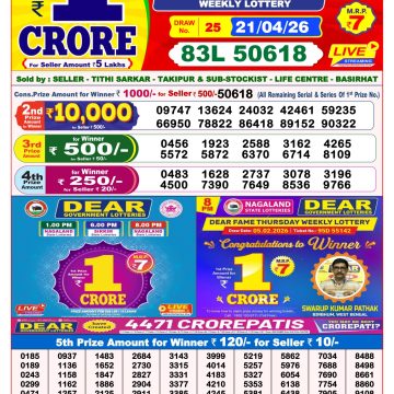 Rajshree Wednesday 8pm Weekly Lottery Result 04/03/2026 March 4, 2026 Leave a Comment on Rajshree Wednesday 8pm Weekly Lottery Result 04/03/2026 Related Results Rajshree Wednesday 8pm Weekly Lottery Result 22/04/2026 Dear Dream 8pm Wednesday Weekly Lottery Result 22/04/2026 Dear Destiny 8pm Tuesday Weekly Lottery Result 21/04/2026 Dear Clover Monday Weekly Lottery Result 8pm 20/04/2026