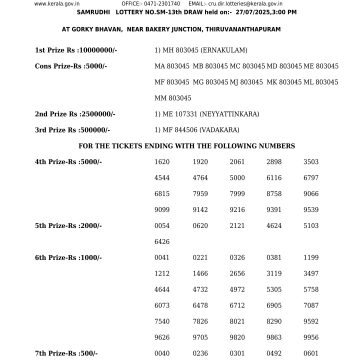 Location: All draws are held at Gorky Bhavan, Thiruvananthapuram, Kerala.